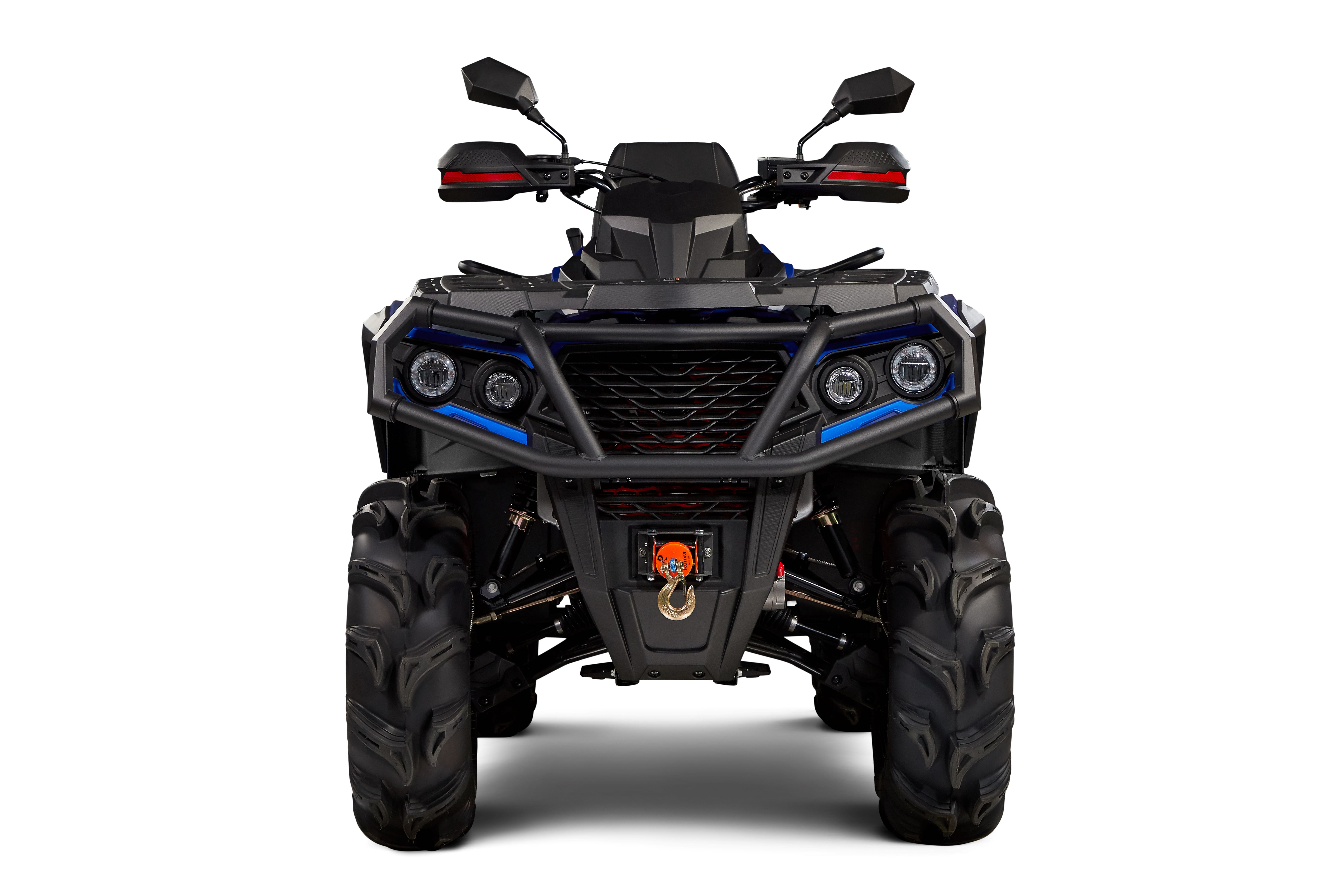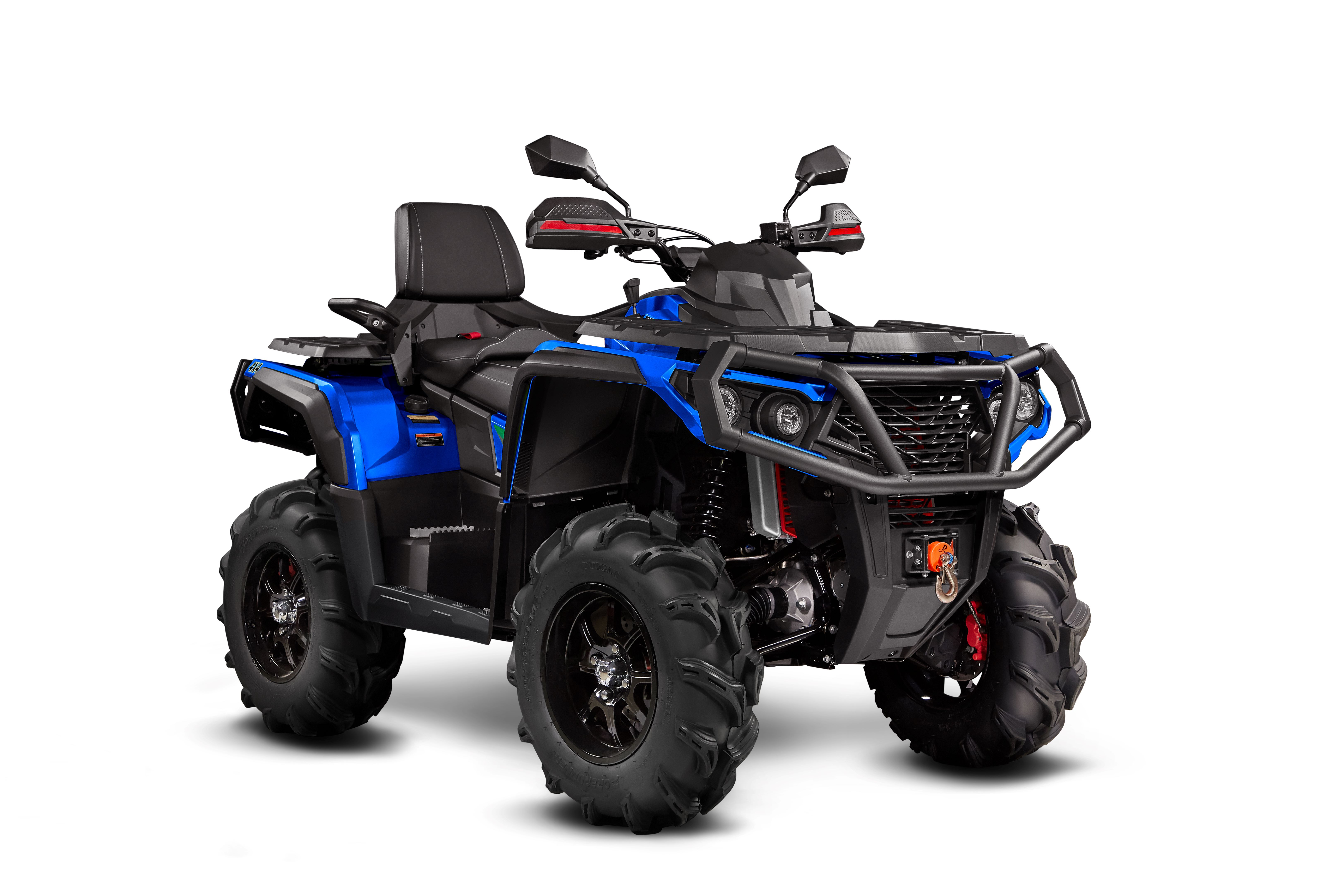 Богатая базовая комплектация. Электроусилитель руля и защита рук позволят с комфортом маневрировать даже в тяжелых условиях. Лебедка с тяговым усилием 1500кг поможет вытащить квадроцикл из любой передряги. Передние и задний бамперы защитят корпус от повреждений. Благодаря комфортному пассажирскому сиденью и ручкам, вы сможете с кататься вдвоем. Алюминиевые диски, яркие светодиодные фары и шесть цветов на выбор.
